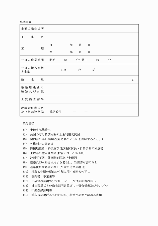 (15) 前各号に掲げるもののほか、村長が必要と認める書類
