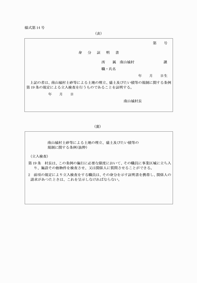 ○南山城村土砂等による土地の埋立、盛土及びたい積等の規制に関する条例施行規則