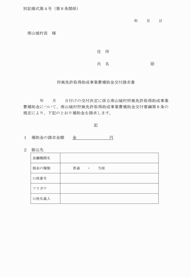 ○南山城村狩猟免許取得助成事業費補助金交付要綱