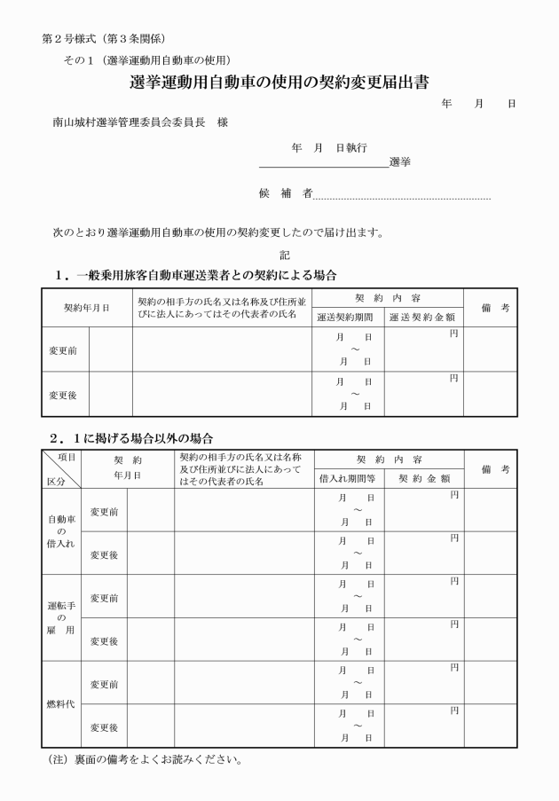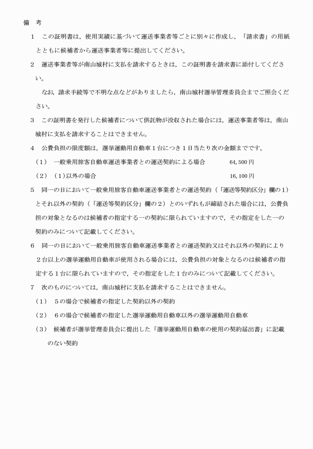 ○南山城村議会議員及び南山城村長の選挙における選挙運動の公営に関する規程