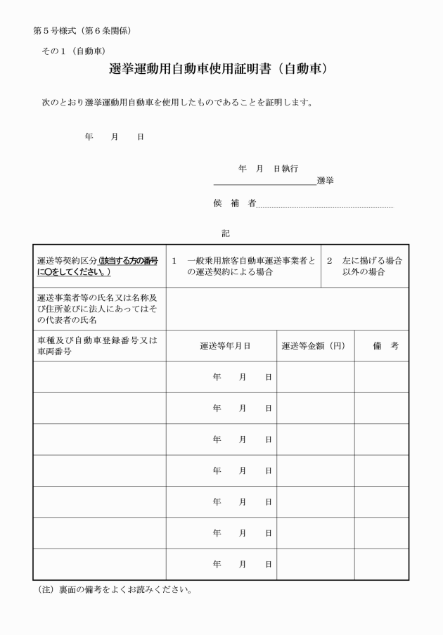 (選挙運動用自動車の使用等の公営の確認申請等)